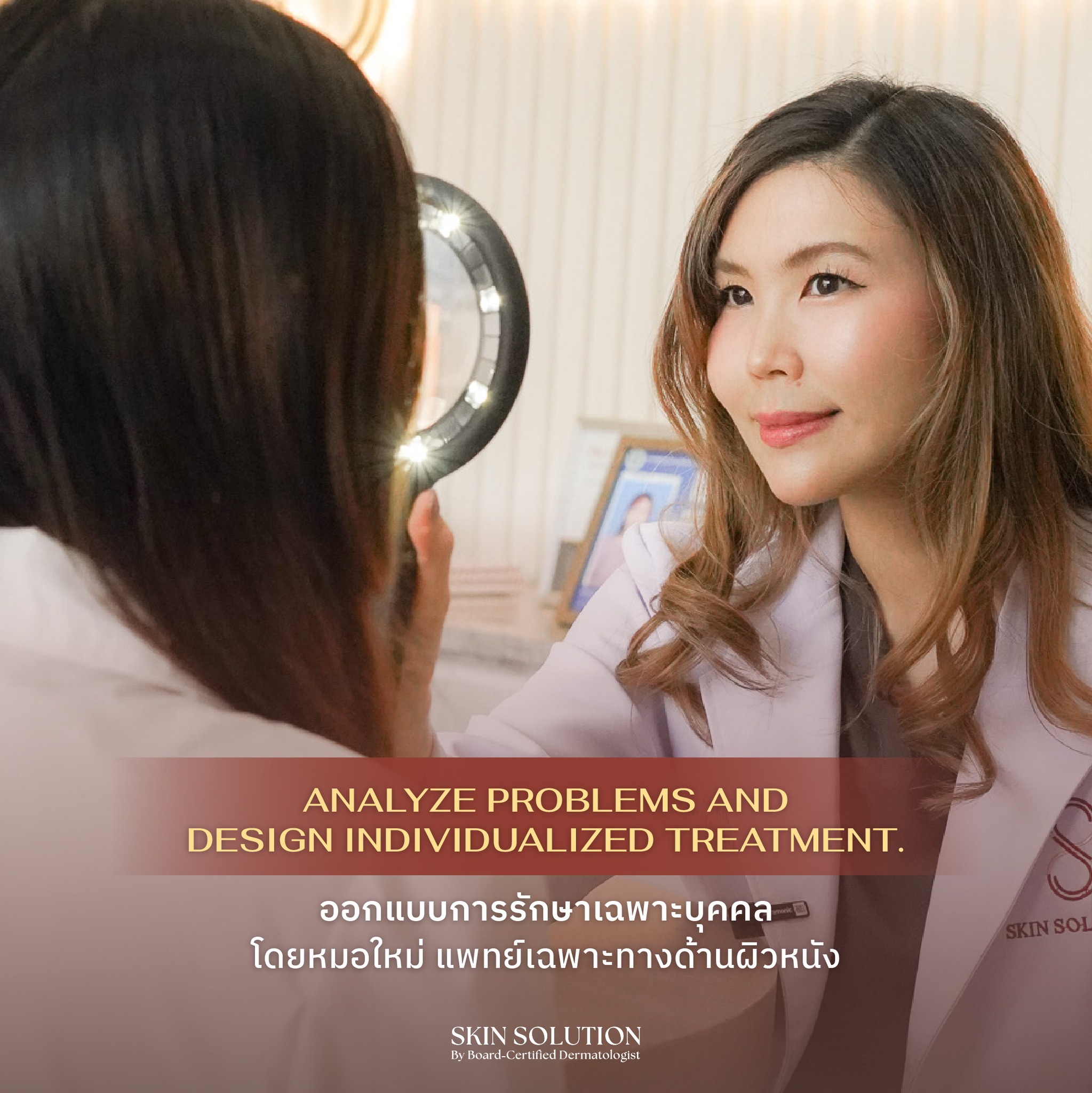 วินิจฉัยการรักษาอย่างละเอียดและออกแบบการรักษาเฉพาะบุคคลโดย คุณหมอใหม่ พญ. กุลวดี เหล่าสกุล แพทย์เฉพาะทางผิวหนัง วุฒิบัตรตจวิทยา (Board-Certified Dermatologist) ที่รับรองโดยแพทยสภา